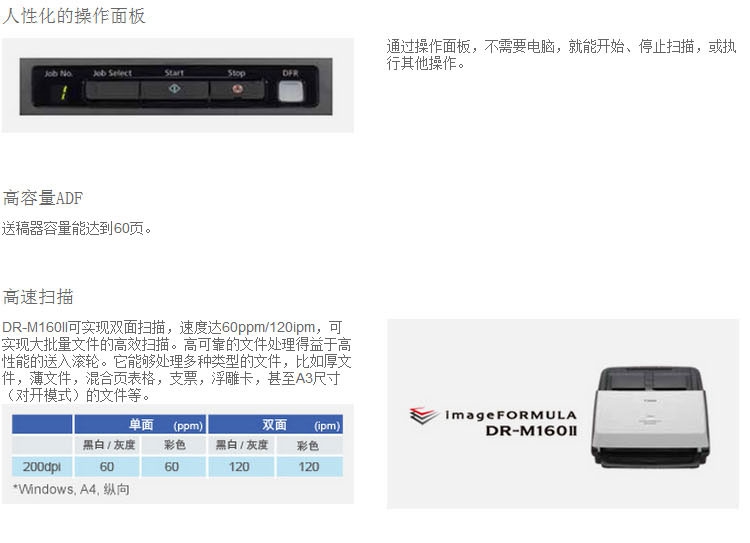 Canon佳能 DR-M160II 桌面型扫描仪A4高速馈纸式双面文件扫描仪